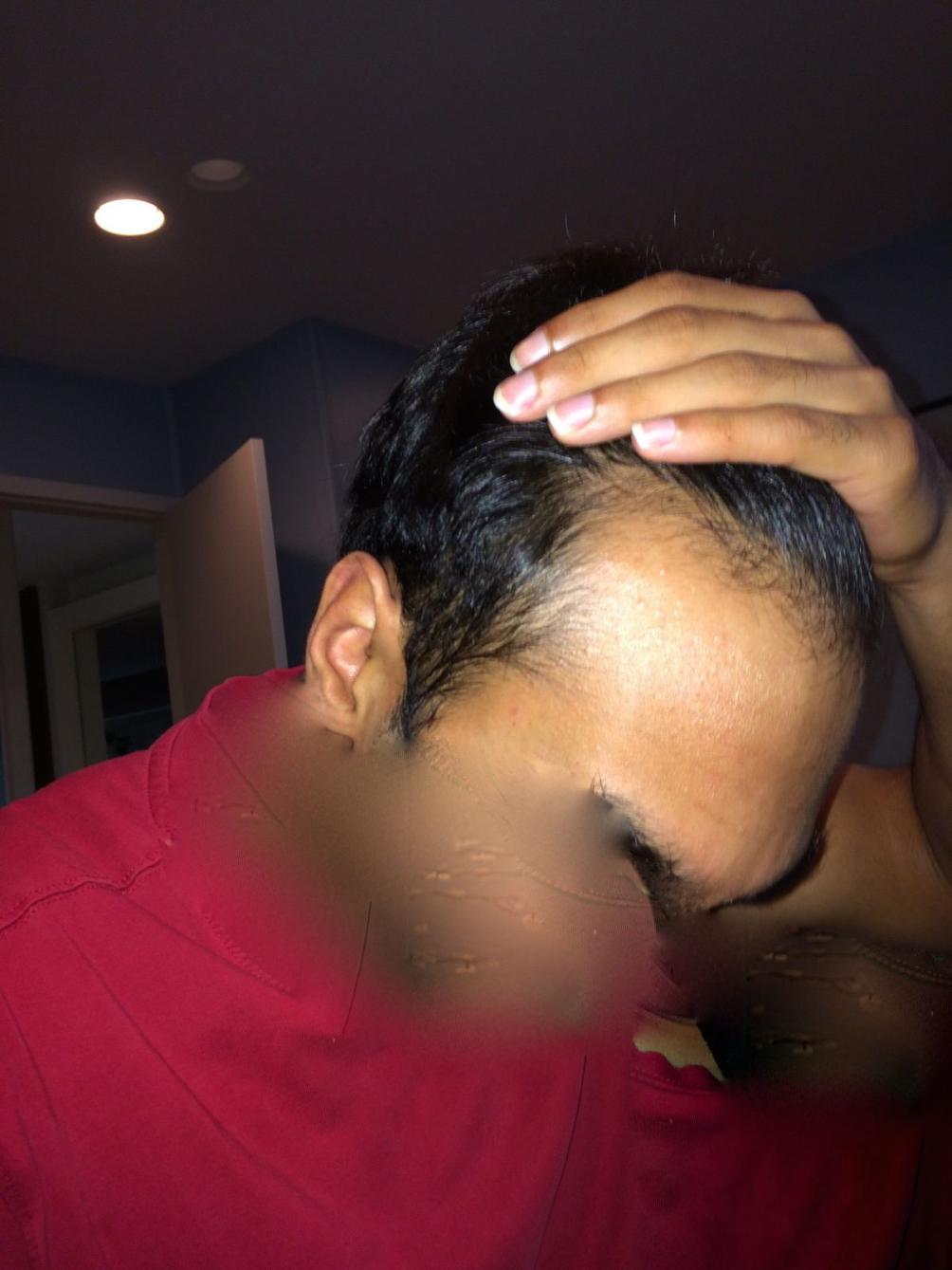 My plan is to get my hairline restored a little bit with a transplant - just so I can comb my hair over without a NW3 temple being exposed. Then, when I'm older get another transplant. Then, if I run out of donor hair for my crown I could always wear a custom hair system just on the bald patch. This is granted that NONE of the stuff on CB, Histogen, etc pans out. If there are NO better alternatives to propecia 10-15 years from now, then that's the risk I guess I face. Anyway, I'd like your guys advice and feedback on my "plan". Here are 3 pictures. I blurred my face because I don't like posting pictures of myself on public websites.
