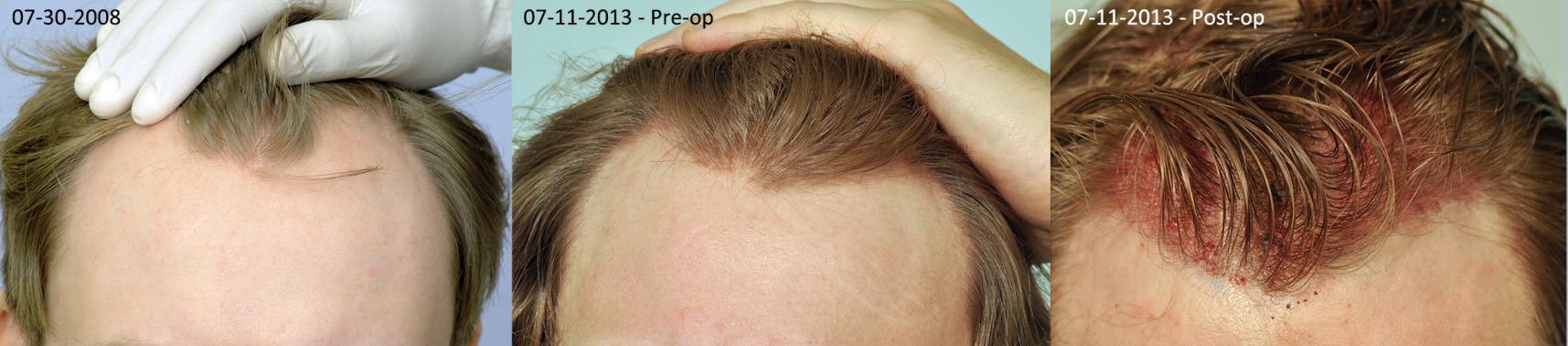 I couldn't find examples of his work posted. It's extremely important you go with a doctor who has a reputation for doing excellent work. It's really easy to butcher a hair transplant. Sometimes the graft recipient area looks OK, then down the road a very short haircut reveals scarring in the donor area because too large a punch was used. Sometimes the hair direction and density is wrong.