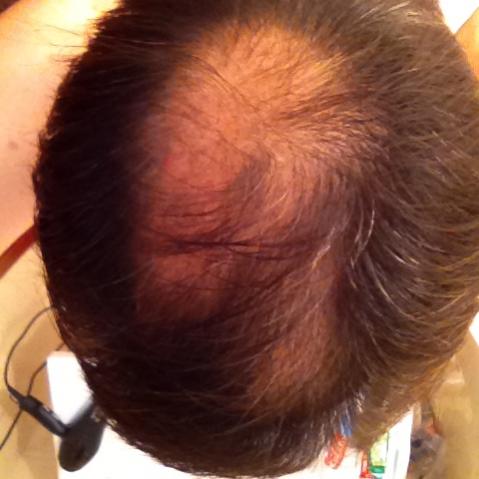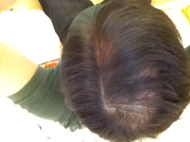The view from the top is the most telling. This is the before shot. Not only was it visible from the top, but very apparent from all angles. The hair diameter was very thin at the top and clumps of hair would shed daily.