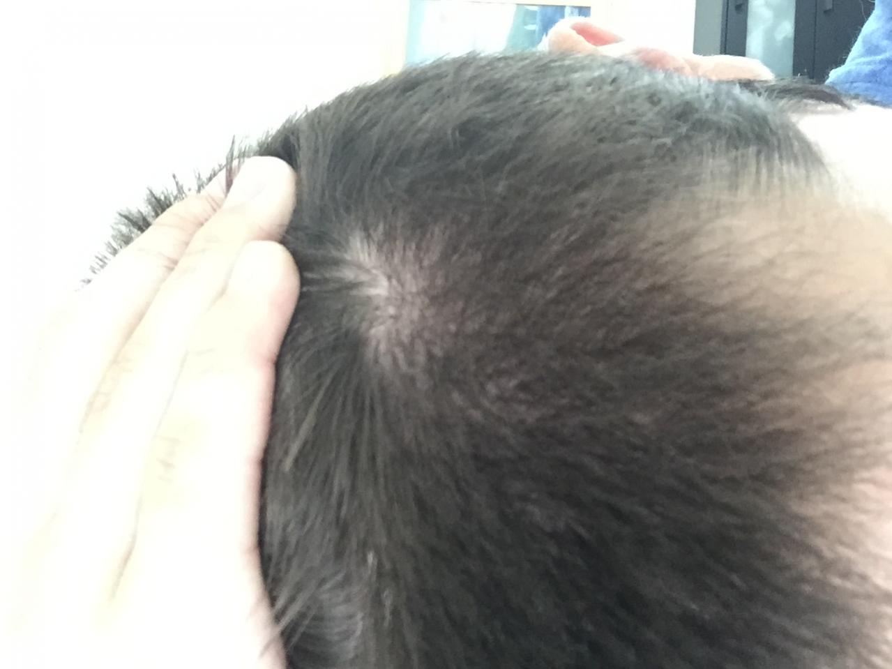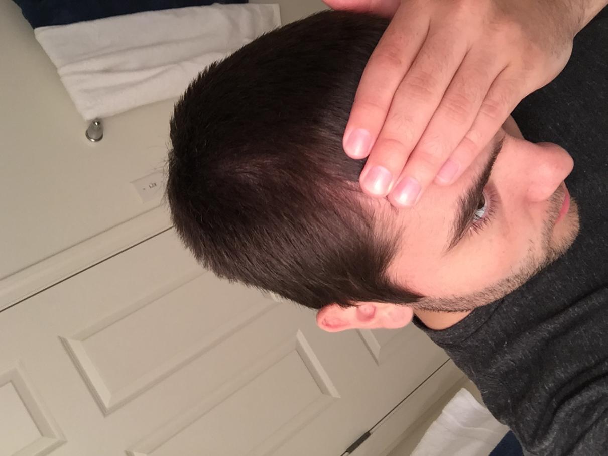 Fast-forward to today and my hair is currently an inch on top and about 3/4 an inch on the sides. When I take a photo of the back of my head you can see a crease in the hair, more so on the right side where my scar is probably about 3mm. While the average person wouldn't think twice about it, when I see it with a mirror I'm not too happy about it. The sides of the transplanted area appear thin under lighting as well, but I've learned to kind of mask it with careful styling and a dry-look hair spray.