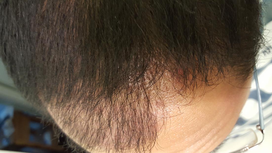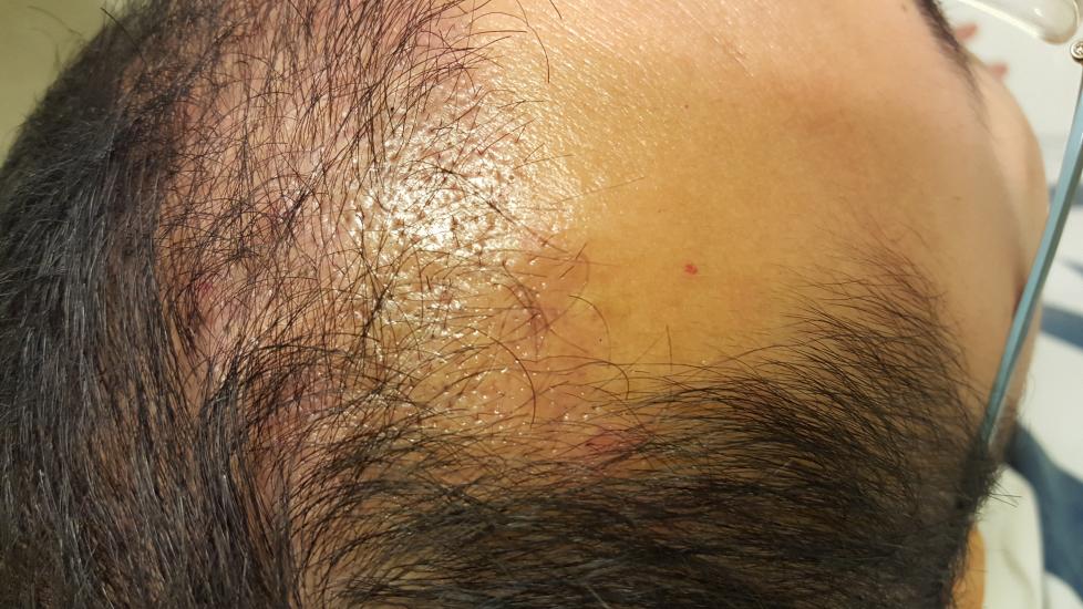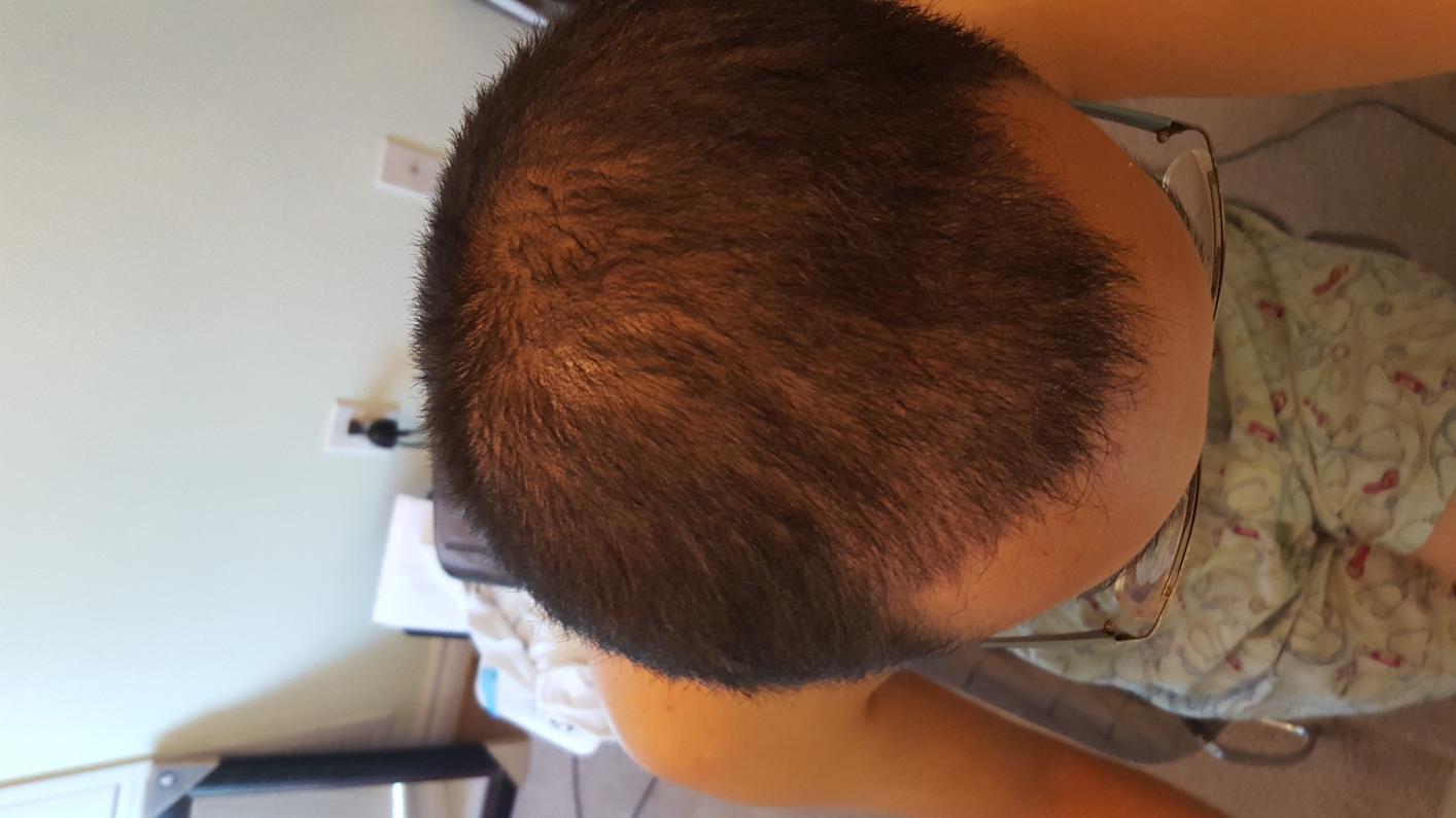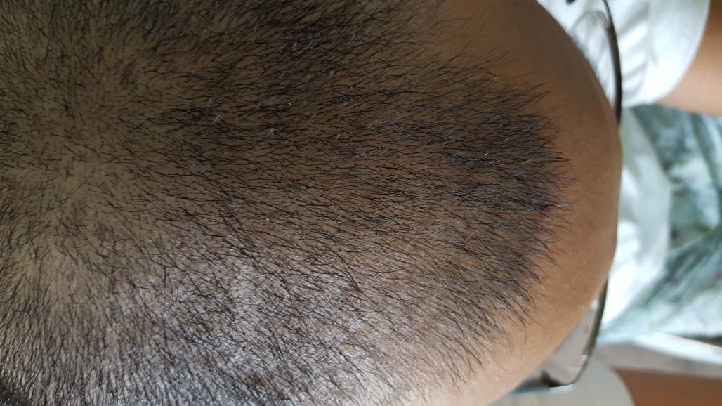 4. As you can see I have a huge contrast between the frontal area and the rest of my head. What kind of haircut is best....or is there any concealer I should use to cover this bald area now?