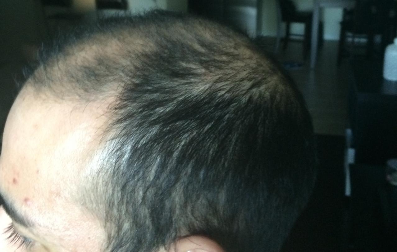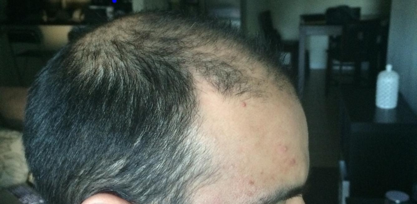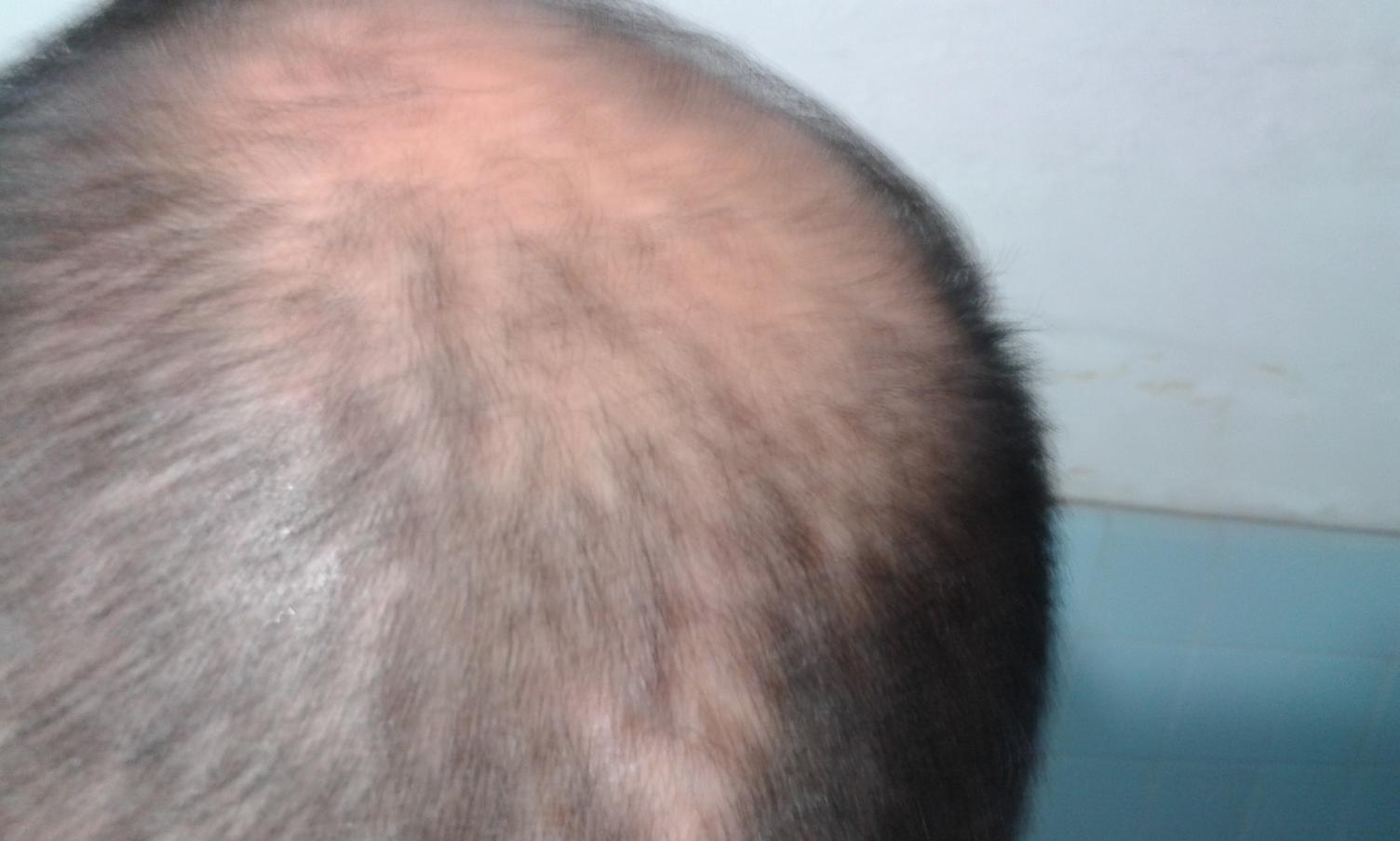 my sides above my ears have always been patchy and problematic since I was in high school and they feel the same to me, the back of my head feels the same to me too, and I usually buzz it down, and when it's buzzed the back of my head doesn't feel like it's lot any density at all. Not that it has any great density to begin with, it just hasn't changed to me.