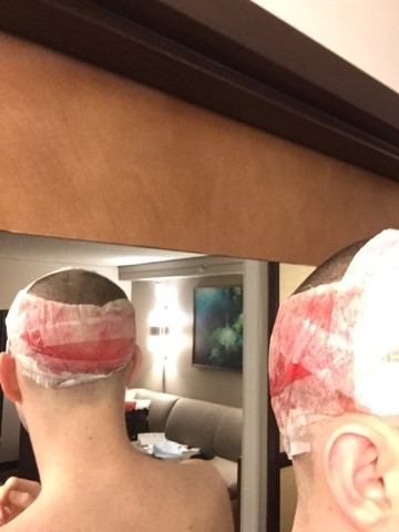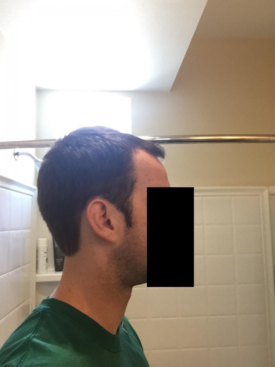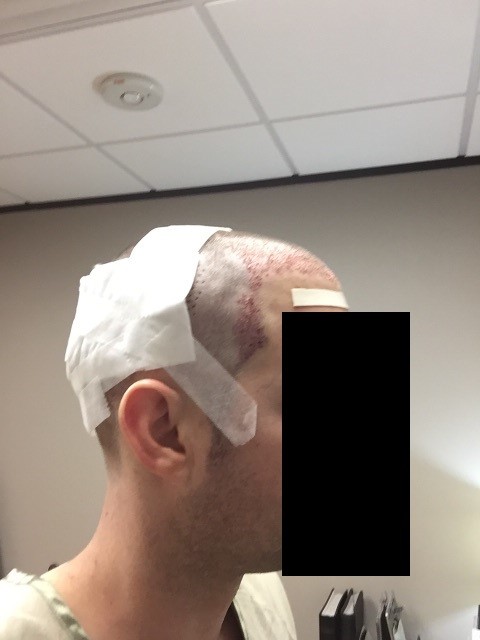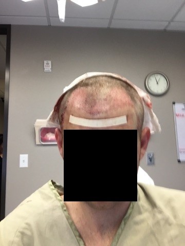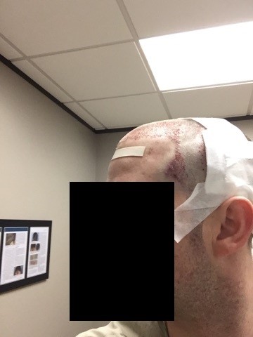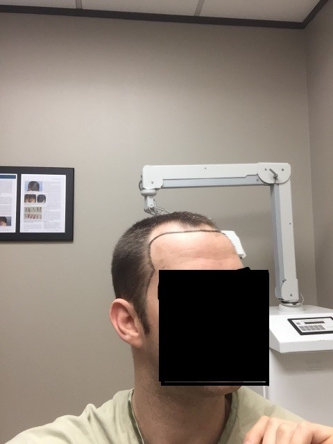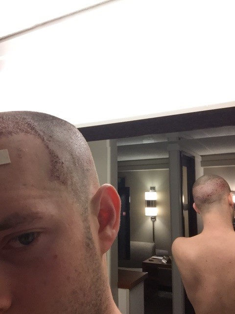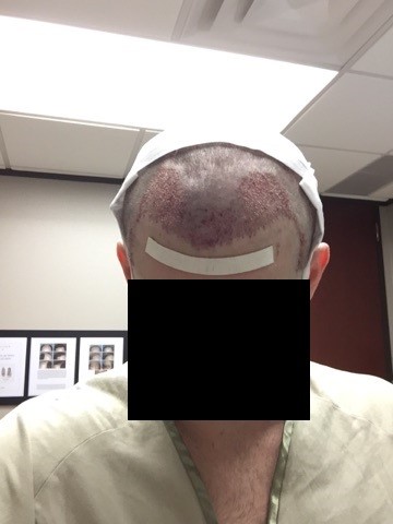 On the day after the procedure I began washing my head by pouring a cup of water over my entire head (as per the post-op instructions). I looked into the sink and couldn’t believe what I saw…ALL MY HAIRS WERE FALLING INTO THE SINK!!!! I frantically called Dr. Harris’ office and explained the situation. Laura kindly suggested I come in for an examination. As I had figured out on the car ride over there, the hairs that I was seeing in the sink were simply stragglers from my pre-op haircut. Dr. Harris explained that if grafts were falling out they would be much longer, have a bulb, and likely cause bleeding. Despite having received a 3.9 GPA in my master’s program, I wasn’t smart enough to remember that they gave me a haircut before surgery lol! As soon as my blood pressure returned to normal I happily went on my way.