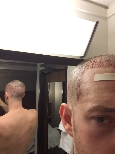 Leading up to the procedure I was a ball of anxiety (as my wonderful girlfriend can attest to). Two days before the procedure I gave her a “free pass” to make all the baldy jokes she wanted to, which helped to lighten the mood a little bit. However, I still remained anxious and thought about cancelling up through the night before my procedure. As Spencer Kobren repeatedly says “Once you’re cut, you’re cut”. I was well aware that after my procedure there was no going back and that I would be committed to treating my hair loss over the long-term. It’s possible that ten years from now I may look back at this time of my life and think “what was I thinking?” however, it’s better than living a sub-par life and always wondering “what if?”