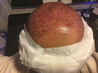 During the hair transplantation preparation I had some pain but that was the first five or 10 minutes. The rest was just normal, laying down, getting bored ,and wondering how things are going while am getting hair transplanting. I had a little break in the middle of this operation. When the operation finished, I was learned the procedures and the precautions to take while sleeping the next 7 night. I went back to the hotel. I woke up in the morning with a bandage on. Picked up by a hospitals driver to the clinic. The clinik team took off the bandage. And Dr explained how the process went.