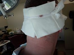 On day number 2, I was able to remove the bandage around my head - it was raw at first but felt better after applying polysporin antibiotic cream. No long after the swelling began as the freezing began moving downwards. We all poked fun at me for the large cheeks and puffy eyes.