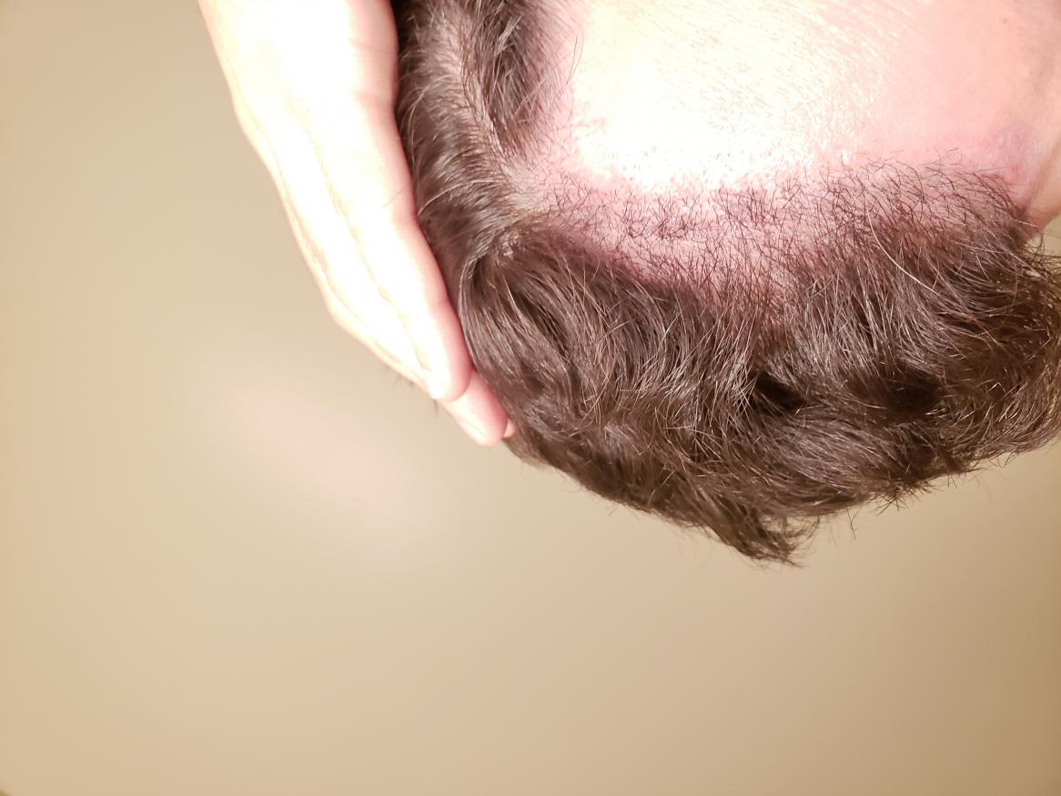 After this discussion, we moved into his surgical room, he spent a long time carefully removing the strip and old scar. He had to take extra care because there was a lot of scar tissue and he did not want to transect any follicles. He closed up the donor using a double tricho closure and also stuffed it full with Acell to further promote healing. I am to keep the suture in for 3 weeks, it was only 10 days on my last procedure. I am confident this will greatly help with keeping my scar from stretching.