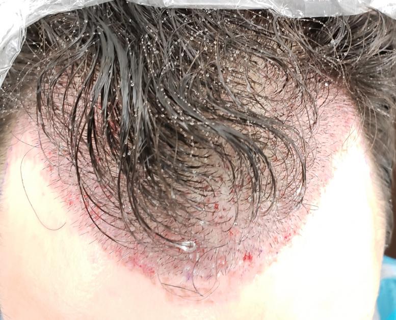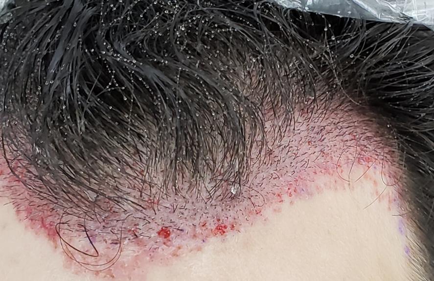 NOTE: Again, the large red splotches are from electrolysis removal of old grafts. These should fully heal in less then a week.