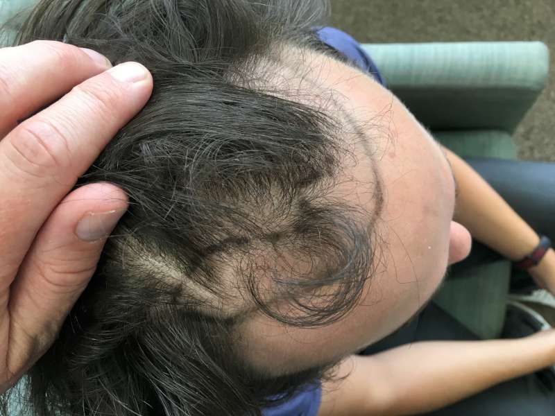 I'd suggest drawing the hairline you want or at least mark the lower points of the center and both sides of your hairline to give us an idea.
