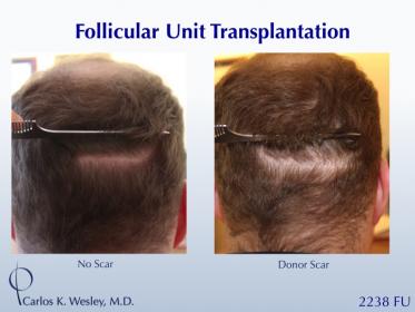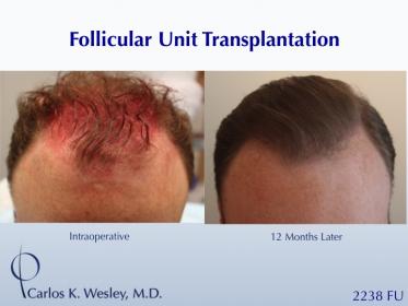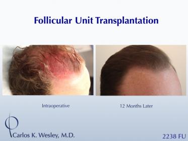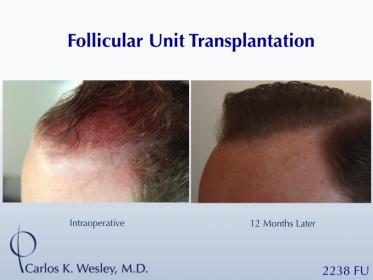 This 29-year-old wanted a natural-appearing fullness to his hairline. However, he also desired (as all patients do) a hairline that will look age appropriate in his 30s, 40s, and beyond. He underwent a follicular unit transplantation (FUT) session with Dr. Carlos K. Wesley in which a total of 2238 grafts were placed.