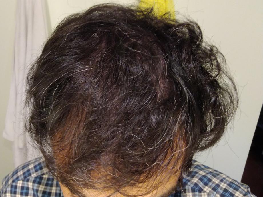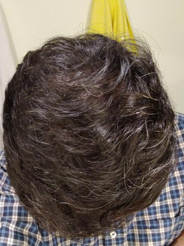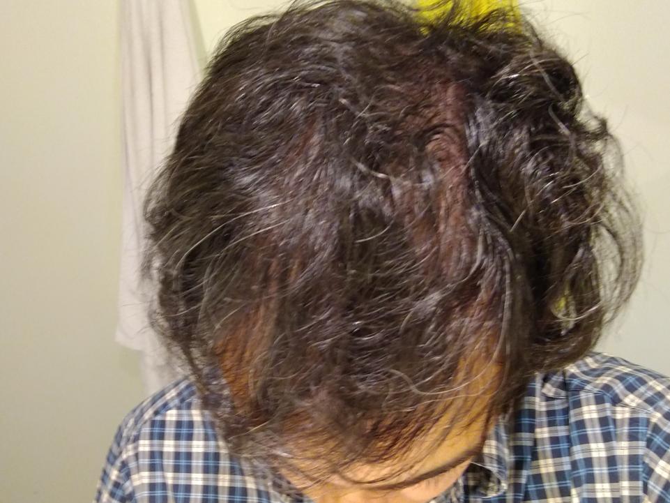 28 year : A job transfer to a place with extremely hard water , developing chronic seborrheic dermatitis , applying various topical medicines for the same caused further loss in year 2017 and 2018 .To the extent that bare scalp was visible in front region of scalp.