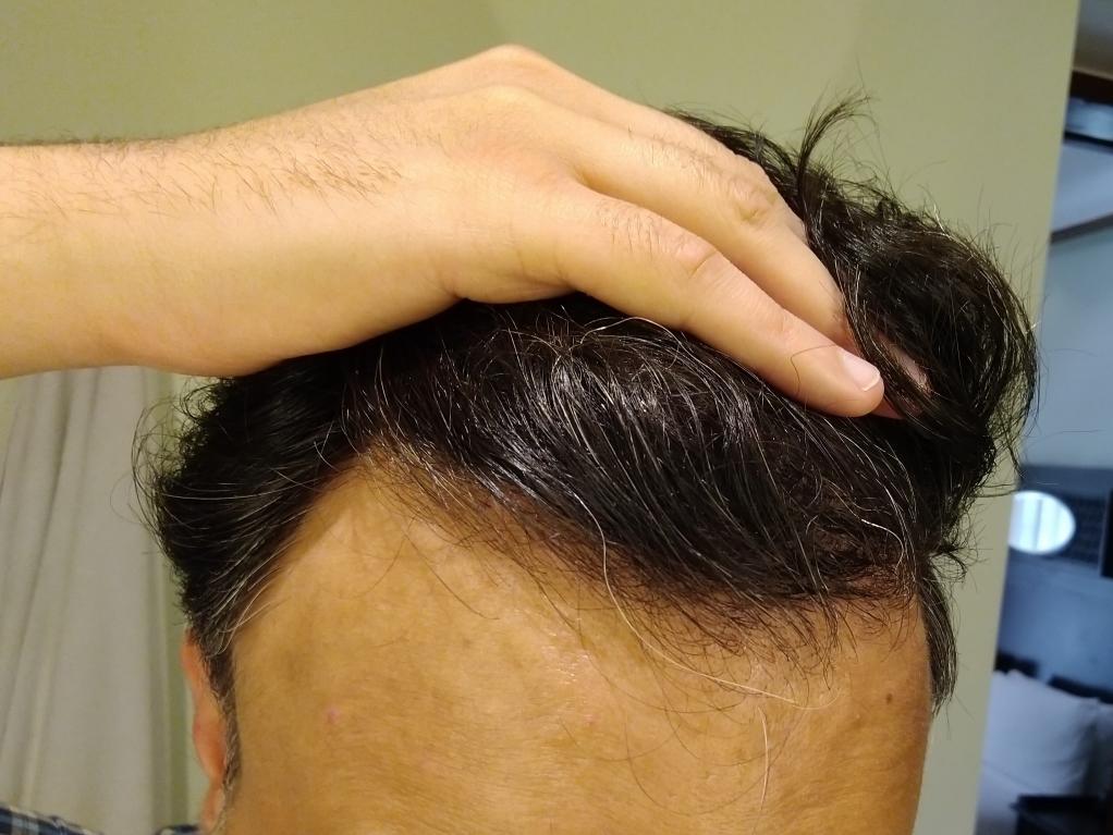 But the transplant did not go undetected . Returned office after 2 weeks with a bandana . Removed the bandana after 5 more days . But even after 20 days co-workers were able to notice the straight hairline and tiny scabs . Many commented whether I had got a Hair transplant . Had to deny and blame it on an allergy.