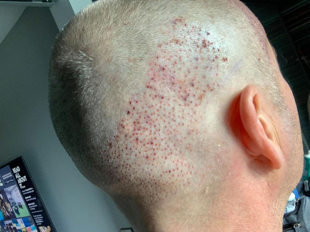 There was no pain at all (a few numbing little injections initially which were much less harsh than I was anticipating) all subsequent injections were done whilst area was still numb so didn’t feel a thing. There has been no pain since the procedure. The graft total count was 1,720. Hair count 3324. 490 single, 850 double & 374 3-4 hair grafts.