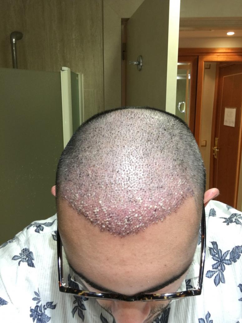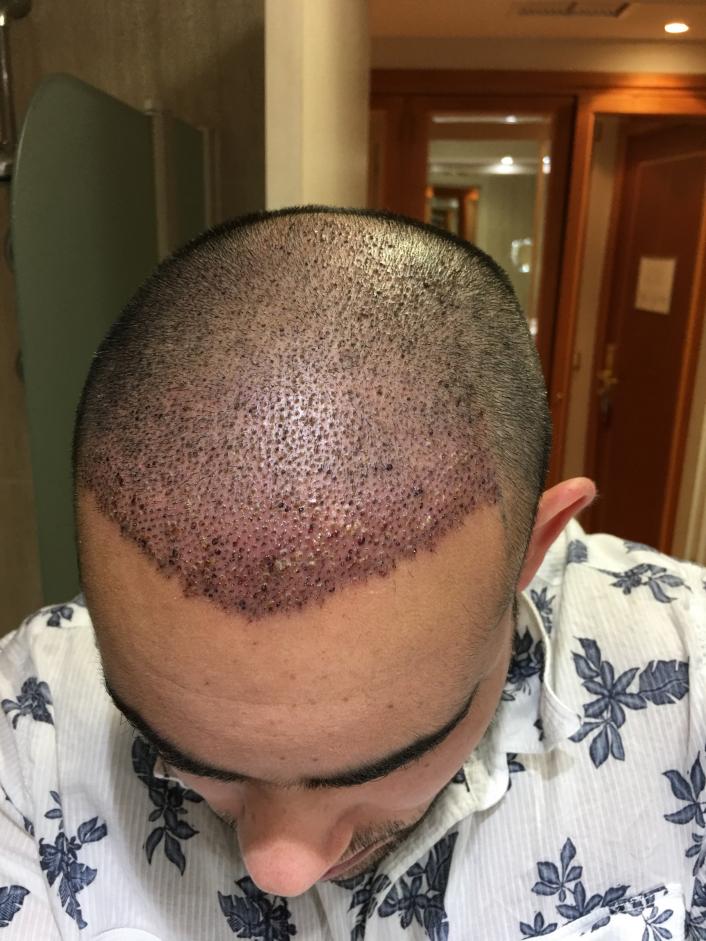 The doctor that I had the hair transplant is supposed to be one of the best in the world, however from Day 2 Post-Op he mentioned I had an infection localised to the frontal (final) part of the surgery. I was on oral and topical antibiotics. The infection in his words was characterised by "Pain, Redness, Sensitivity, Swelling and yellow pouts"(I did not see this latter symptom and are not visible in any of the pre and post operative pics). He blamed the infection to bacteria from the the air (outside the clinic) entering the pores as soon as I left the clinic on the last day of the surgery (the surgery was over 3 days for 3 parts of the frontal recipient area.