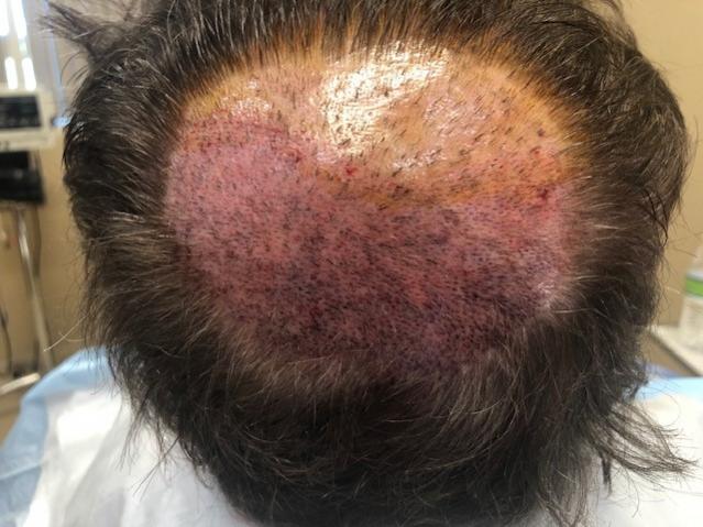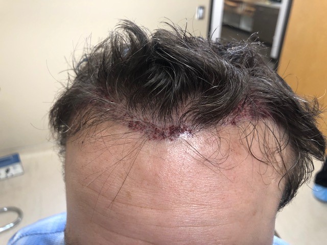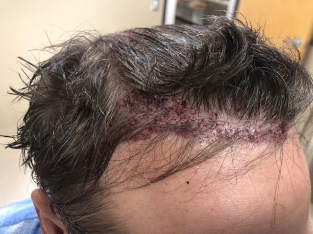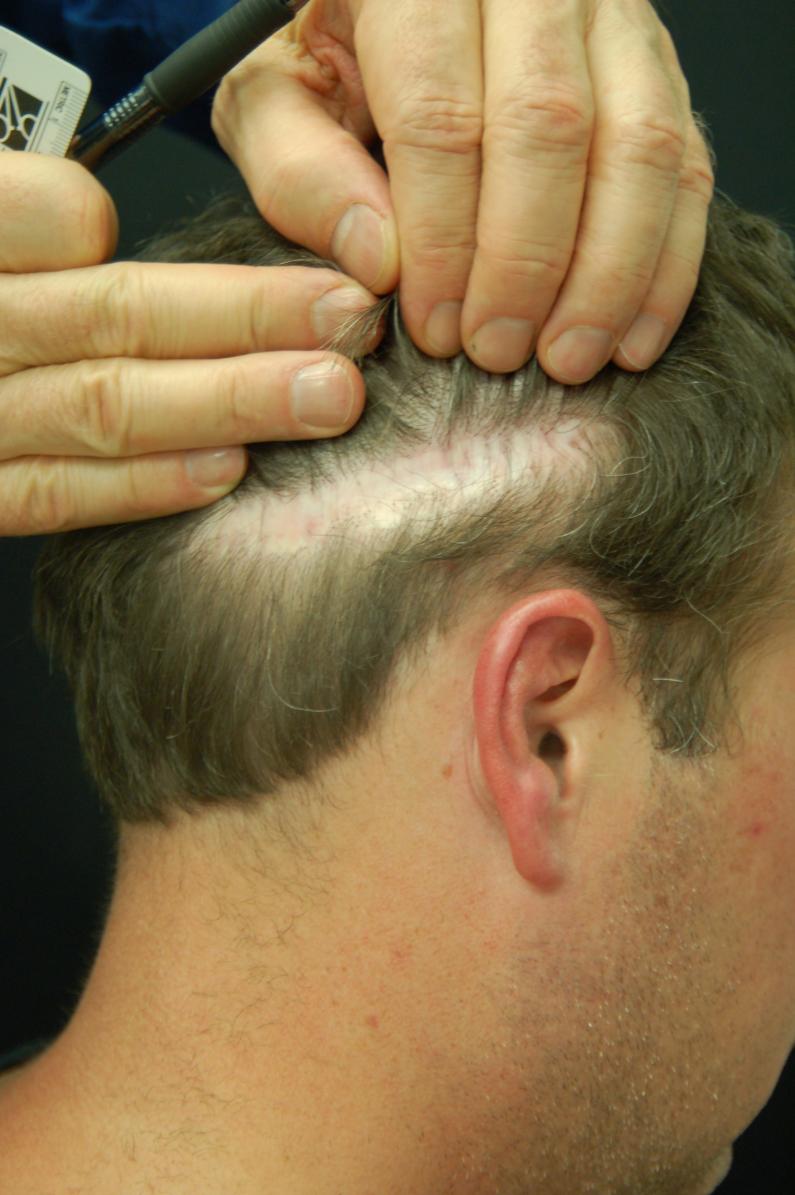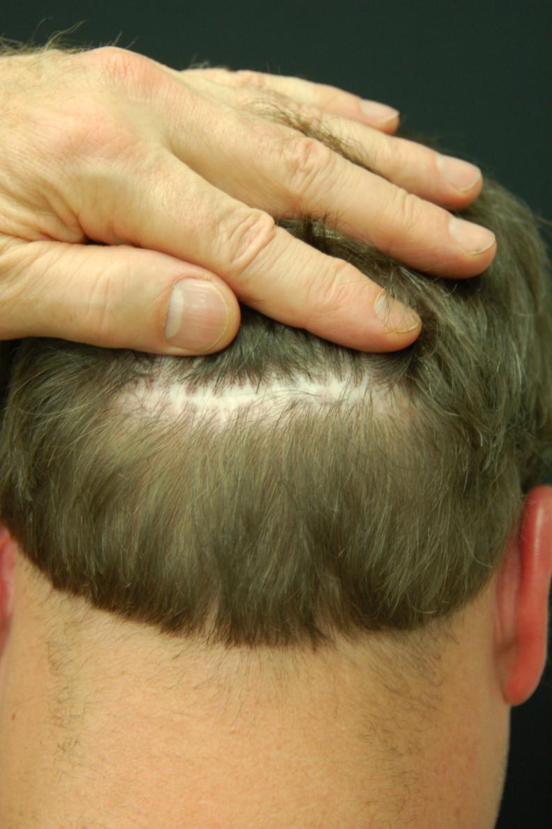 Like many people, I started to lose my hair in my 20s and considered hair transplant as a possible solution. I decided to have my first transplant about 9 years ago. It was a FUT about 3500 grafts to the front and crown by a surgeon in Nashville, TN. I was very pleased with the initial improvement, but realized that I needed more coverage. My second procedure was 2 years later, about the same number of grafts to the same area. I was involved with the same hair transplant group in Nashville, but different surgeon. Post-op, I immediately noticed that the donor scar was very tight and eventually started to become wider and wider. I wasn't really impressed with the surgeon from the beginning and he told me to just give it time. About 1 year after, the scar was very large and the surgeon said he would perform a scar revision. He basically cut out the old scar and placed a very tight running suture. The suture was left in for 3 weeks and he told me to not bend my neck or do any activity for 1 month. I followed all instructions, but the scar widened just as before. I was very frustrated, angry, embarrassed after going through all this. In order to conceal the scar, I would have to grow my hair long on the sides, which always bothered me.