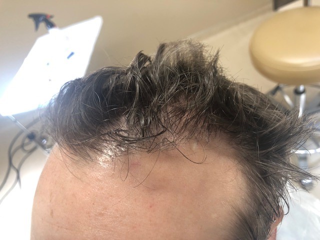 It was just recently that I had the expanders removed. Dr. Alexander's office is in the same building as the surgery center that Dr. Bass operates. The plan was to remove the expanders, scar and any excess hair could then be used for another transplant. My ultimate goal was resolution of the scar and any hair transplanted would be secondary. Not only was Dr. Bass able to remove the scar, he stated that the expansion left quite a bit of extra hair that could be used to transplant. Following my OR procedure, I was taken upstairs to Dr. Alexander's office where he performed my 3rd hair transplant. I received about 3000 grafts to the front and crown of my head.