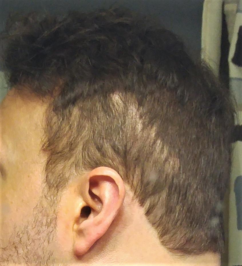 My bareness on the side (right side especially) has now exposed my scar from my procedure years ago. After these two very expensive procedures ($20,000 which I'm still paying off) I'm very dissappointed in the quality of my hair's thinness and continuing loss. I know I've put on an amount of weight the last few but I can't see that factoring into my hair loss.
