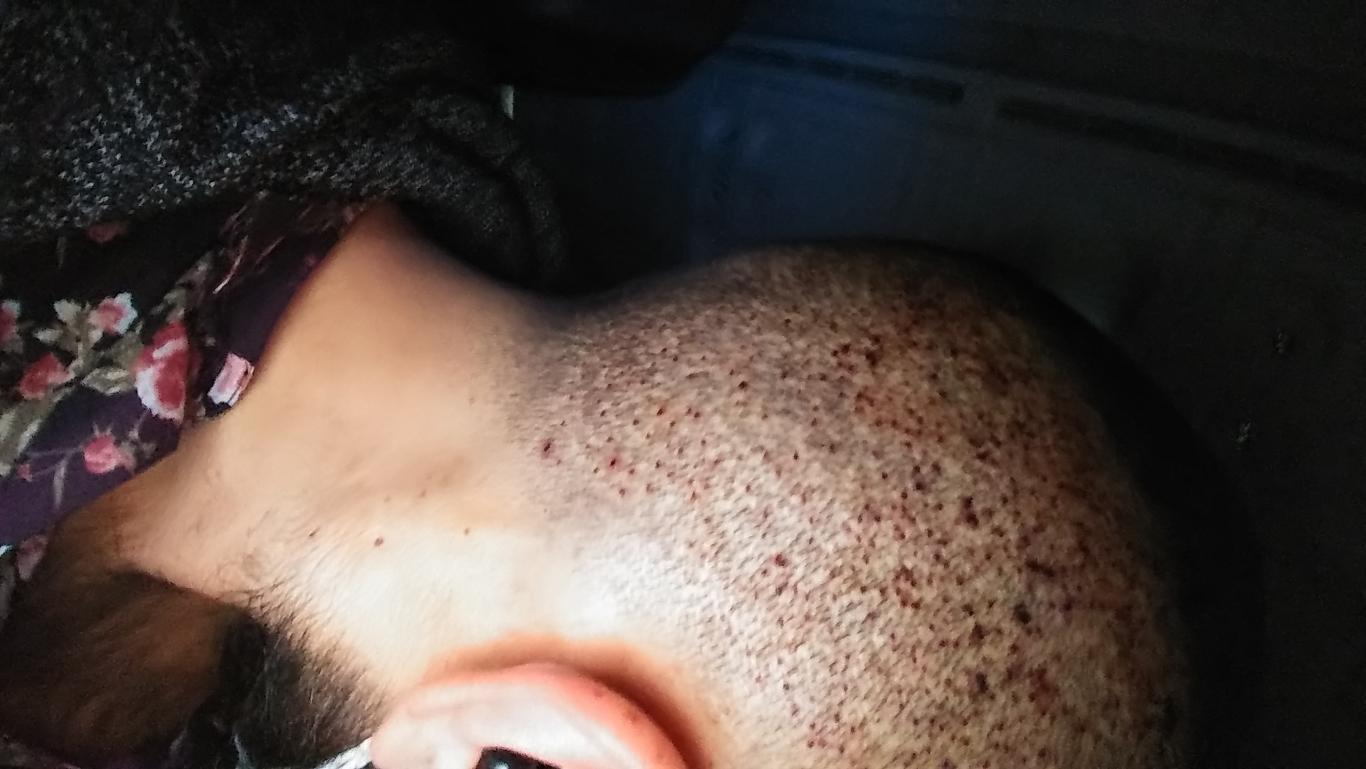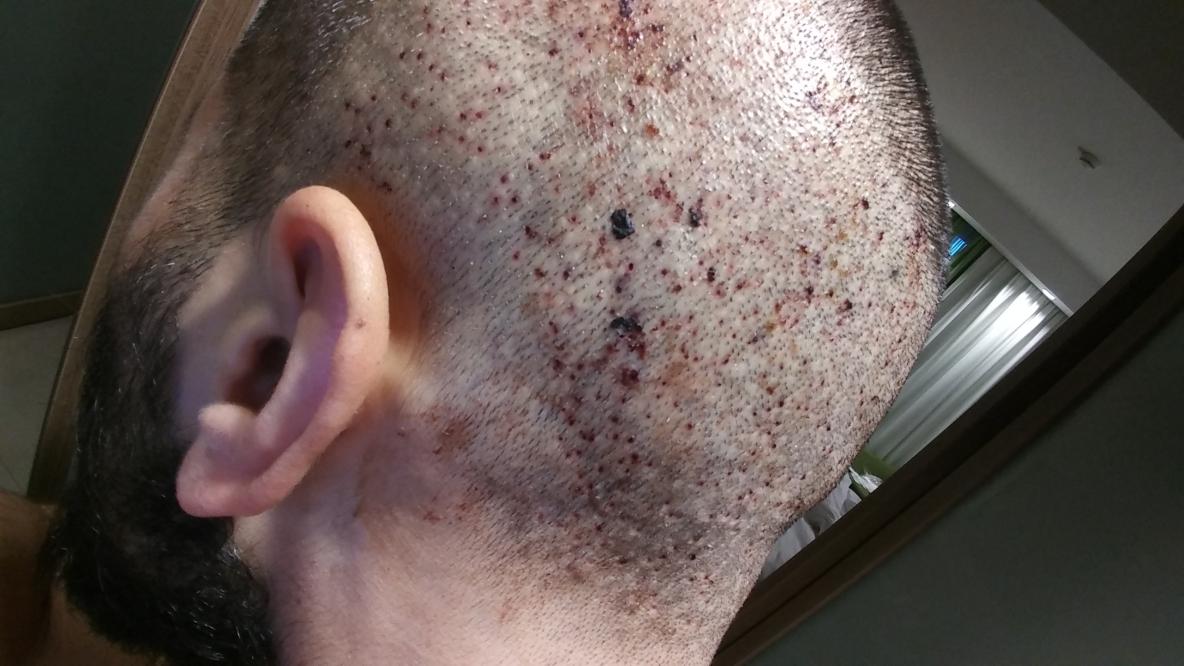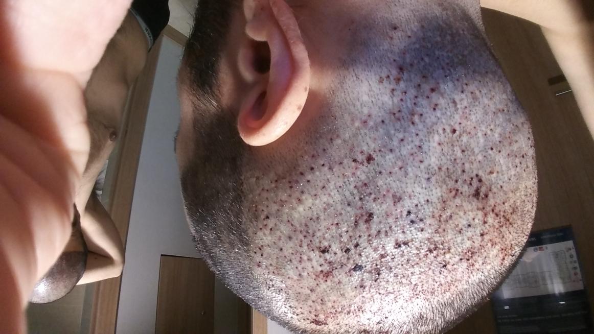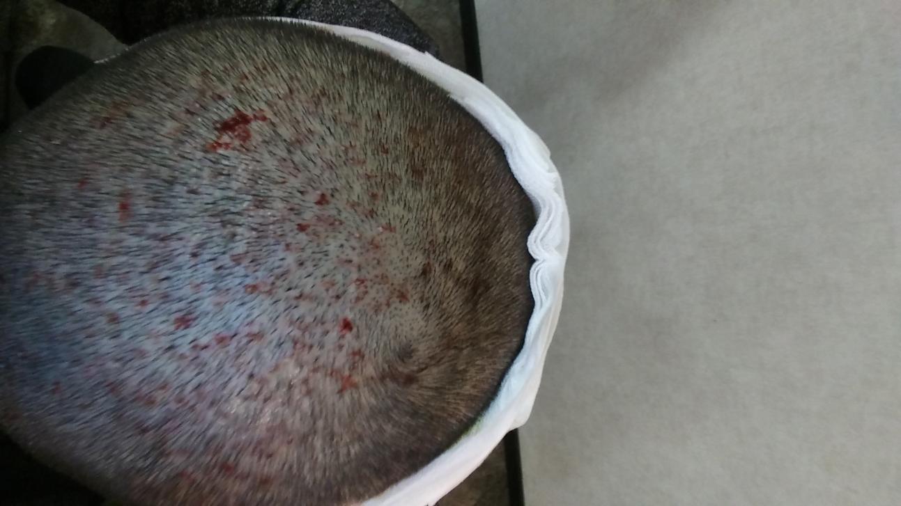 This was the most rushed part of a very traumatic experience, I had a couple of young ladies from the next door esthetics clinic punching my grafts. A nurse from the clinic rushing the 'doctor' back in for incisions. They just wanted to get out of there. And this was when the fear really set in. I felt them pulling flesh out of my donor area, pulling more than just the graft and trying to pack it back in like it would just settle its way back down.