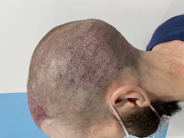 As many people mention, the numbing injections were rather painful, but not intolerable! Initially I was laying face down while the extractions took place and then I had to turn on to my right hand side and then my left so that I was oriented properly while Dr Lupanzula removed the grafts. Overall, I'd say this part of the day took about 3.5 to 4 hours and I definitely dozed off once or twice! The technicians were also in the theatre with us at one end and I could see them working on the microscopes when I was laying on my left.