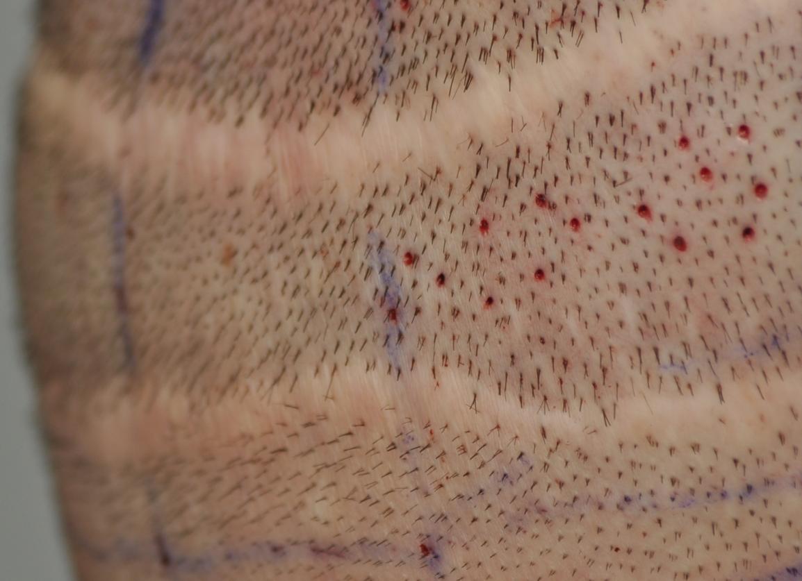 Strip surgeons never mention anything other than the scar as the complication of strip harvesting. Strips marry coarse, dark hair to fine lighter hair. They marry one angle of hair growth to another angle of hair growth. They cause follicles below the scar to grow in a more elevated direction similar to a horse's tail.