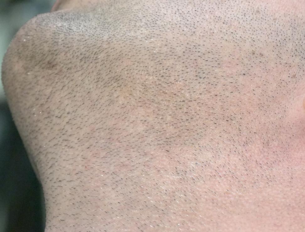 That being said, my goal is to get to a 1-1 1/2 guard. I loved the look. But it will take more work. I have a scar that is slightly raised.... one reason a 0 guard is out of the question. It is also slightly pink and always has been. Both these issue I will attempt to address using the Palomar non ablative laser. it is the only laser I have research that will address hypertrophic red scars in addition to being safe on hairborn tissue.