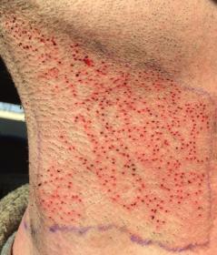 At roughly the same time, I received a PM and multiple emails from another patient of his who is also of Indian descent and lives in the country. His results are worlds apart from my friend here. And he is slamming the same doc. His donor region looks very red, swollen, and the extraction sites are raised and puffy in appearance. He cannot figure out why and neither can I.