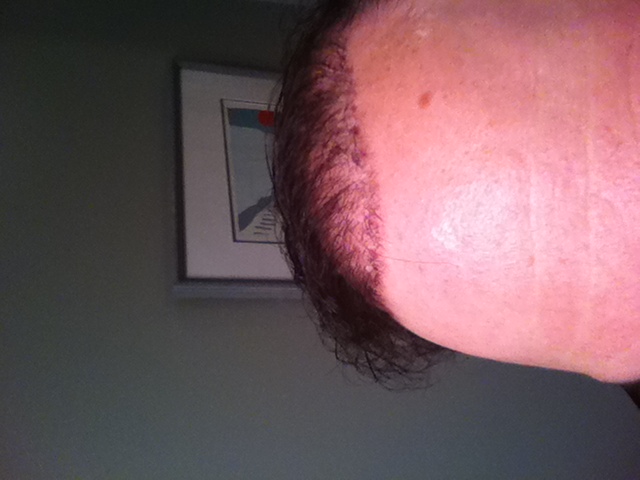 It has now been ten days since the surgery and my head does not have a pluggy look at all. It is so nice to be out in the wind, or the rain, and to not worry about how my hair looks (of course, I do wear a hat to protect my head). It looks thin, of course, but to me, just looking natural, means the world. Most of the plug reduction sites in the front have shrunken to very tiny scabs and I expect them to be done within the week.