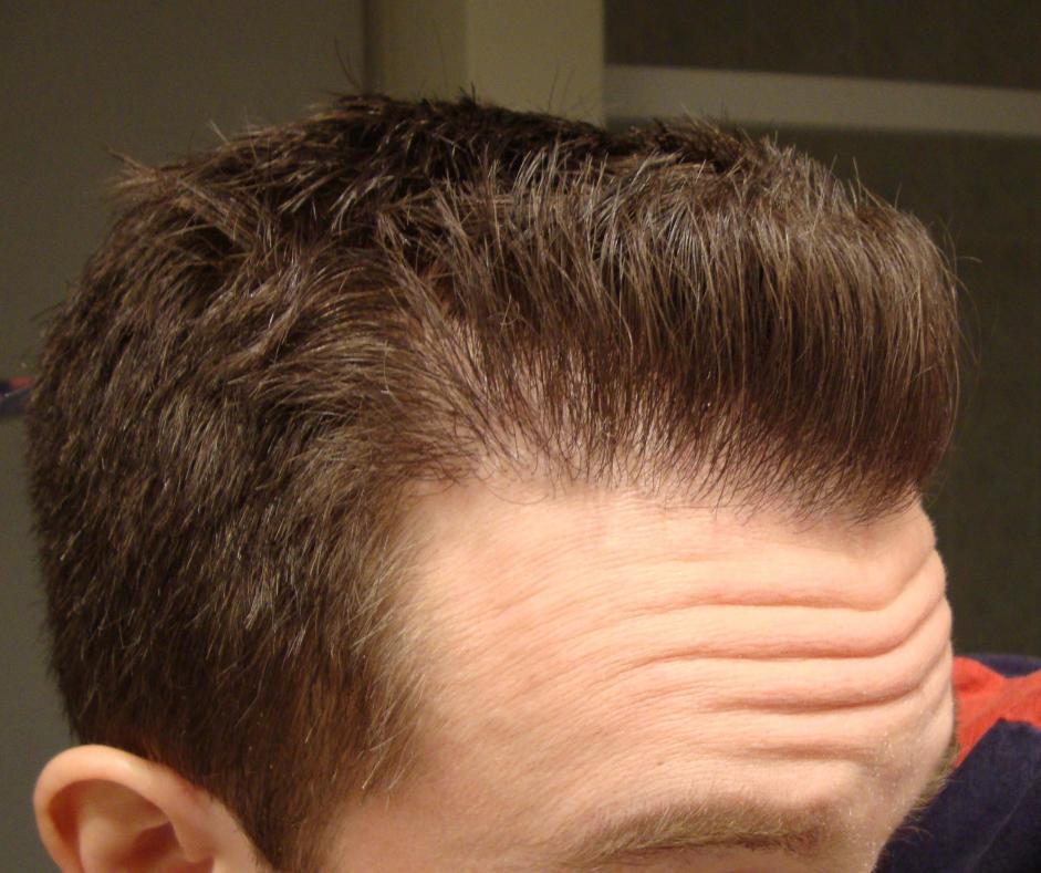 The scar line is the same as before. The 2 tails stretched a little bit, but the central part of the scar is as close to perfect as a scar can get. My barber still can't get over how clean the scar is.