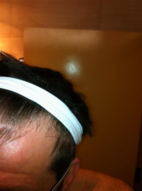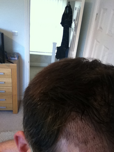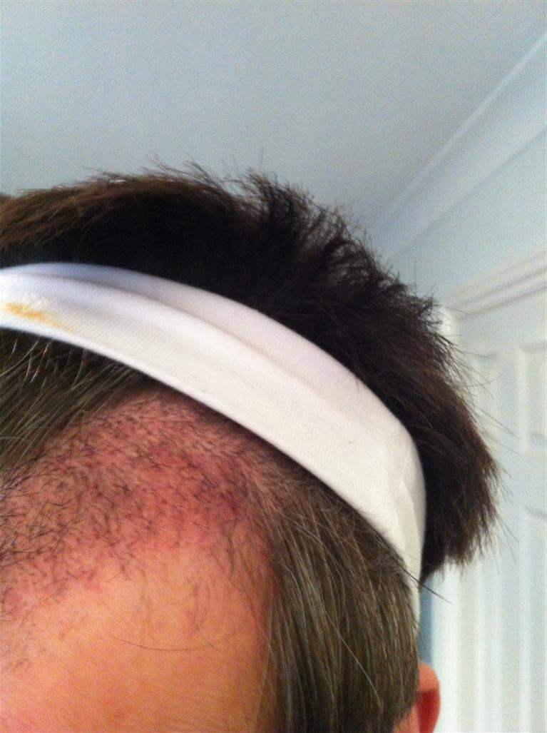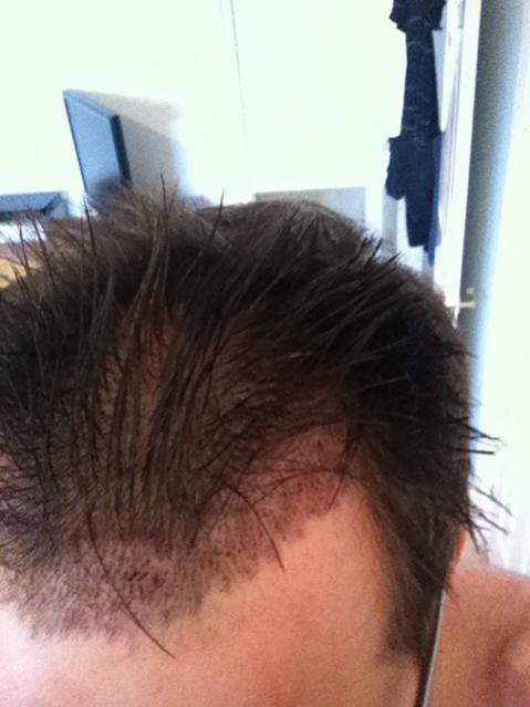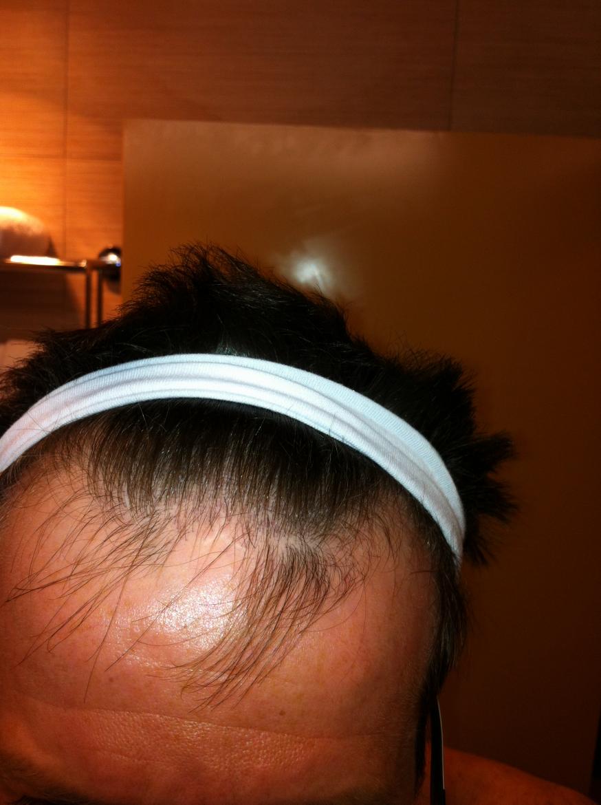 I decided to go to the rest room and have a quick pit stop and check on my new look. Although it didn't look very sexy and was really pleased with the area that had been done. Dr Feller had filled the first inch of the front and gone further up in the temple area.