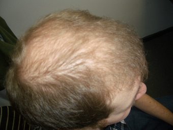while i don't have any slick bald spots (though the center of my hairline is approaching that), my scalp is highly visible under light. under low light it is not as evident but it is still noticable with examination. my hair line, other than the center, is mostly where it was 4 years ago with maybe some temple recession - my temples were always around where they are.