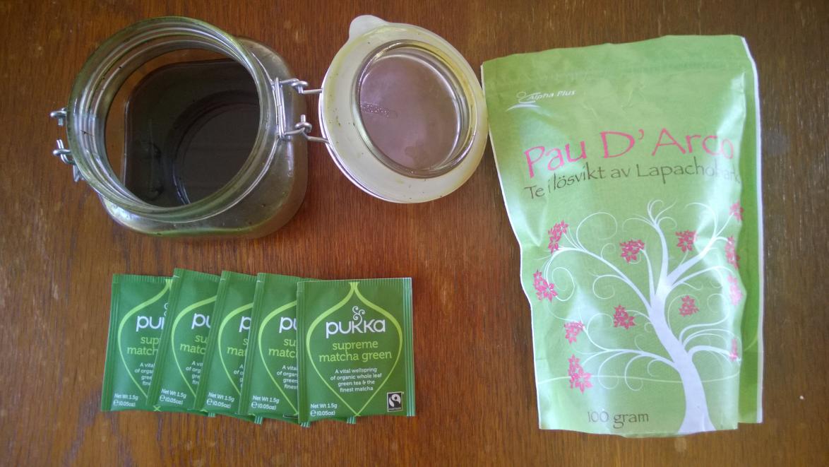 Picture of the mix,lapacho and the tea bags that actually is blended matcha tea without me knowing.