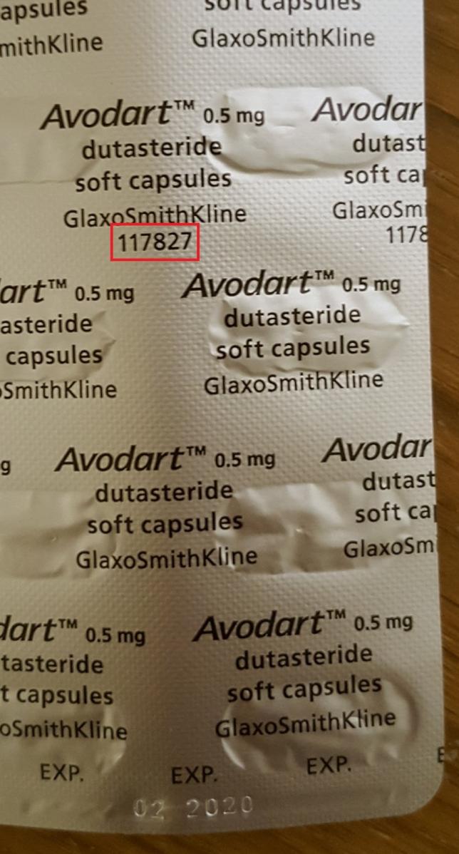 I recently bought an Avodart Pack and I realised there is a number written on the blister pack (not the Lot. No.), the number written below GlaxoSmithKline. I checked the dust flap of the cardboard box and the number was slightly different (see pictures). I want to know what is the significance of these numbers, as I'm being paranoid about the fact that the blister packs might have been replaced or something.