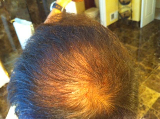 I have a couple of questions: The before pic shows your crown under much brighter light depicting lots of light reflecting off the scalp. Why was the after pic taken in low light which shows no reflection of light on the scalp and also why the combover in the after pic that the first pic did not have? Why was that?"Gillenator"
