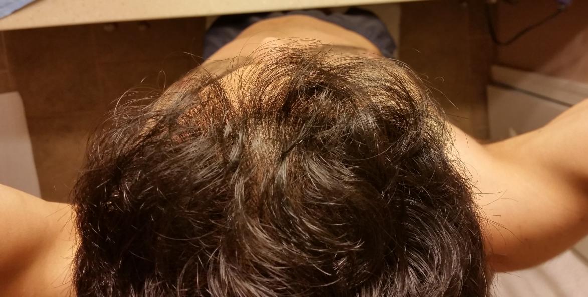 I'd like to explore using RU58841. I have a decent amount of hair left, but I have thinned greatly. I also like to wear my hair long. Please see the attached pictures.
