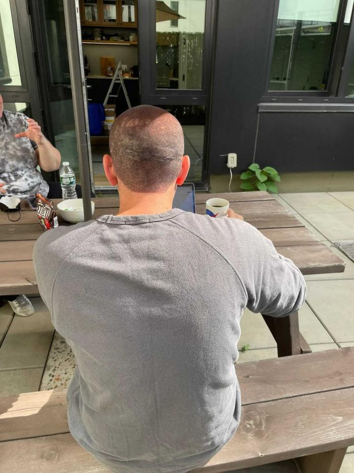 Not sure if anyone has tried something similar but I have been experimenting with using flocking technique to create the illusion of a fresh buzzcut. Very similar to what scalp micropigmentation does, but with actual hair fibers. (im fully bald, stage 6, only the dreaded ring left..)