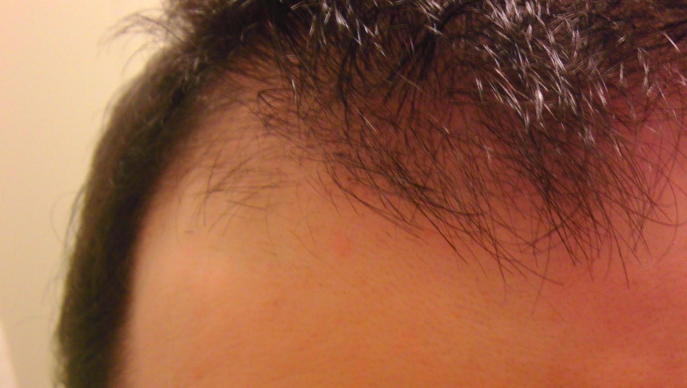 Again, I'm having trouble saying for sure if my hairline is miniaturizing and moving back, or if those hairs are telogen/anogen phasing. However, their placement is so strange, and so obviously ahead of my hairline, that I would lean towards them being regrowth. The only thing worrying me is that I'm the only person that seems to be having any success (if thats what it is)