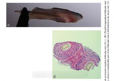 He is splitting follicles. That's how he apparently takes enough of the dermal papillae to transplant hair yet leaves enough for it to regrow in the donor.