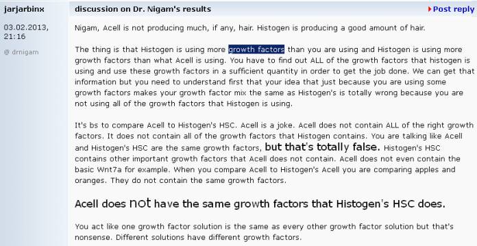 they're idiots, true, but the concept of using growth factors to regrow hair should work. Rogaine works mainly by upregulating VEGF. Histogen does that and more so it should regrow at least as much as rogaine...
