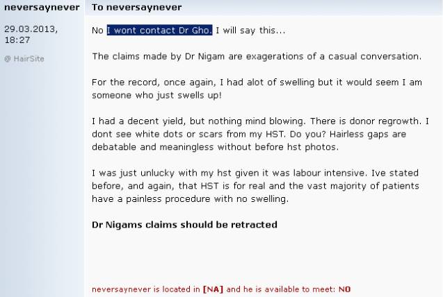 Yeah, sure, not contacting Dr. Gho, but Dr. Gho should "get a grip" about every bold claim out there "on open forums", sure ...Comment