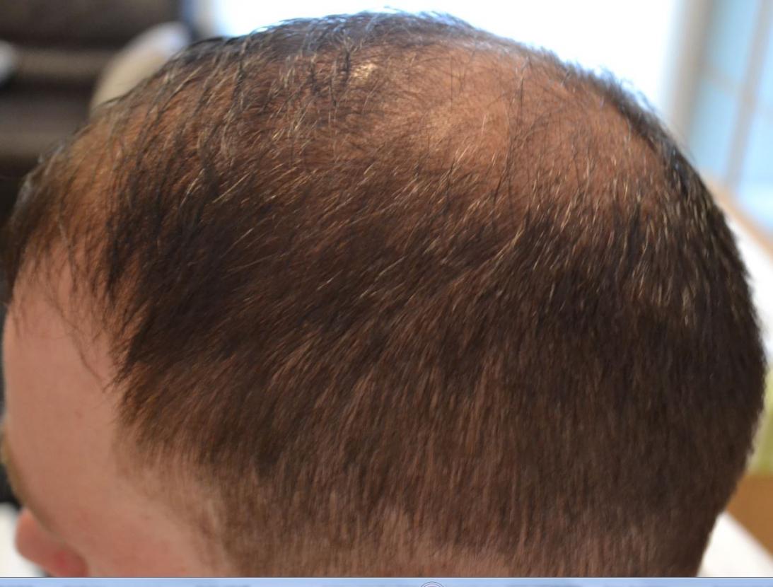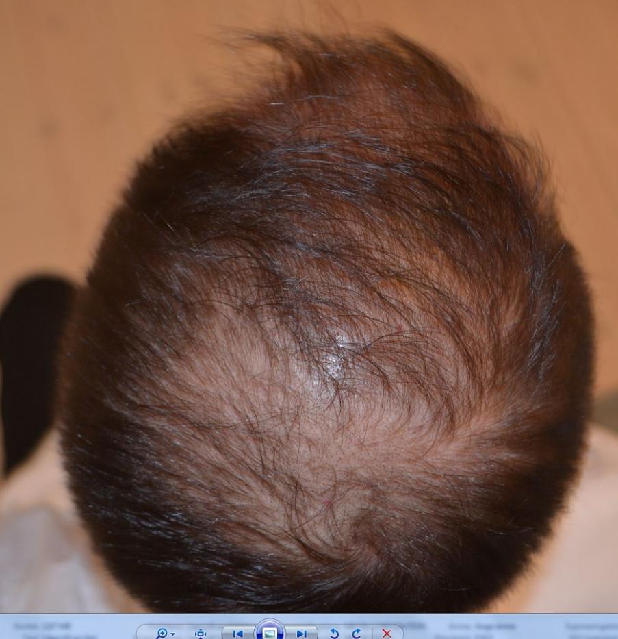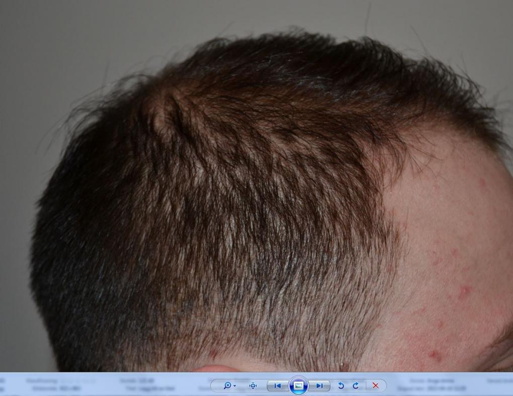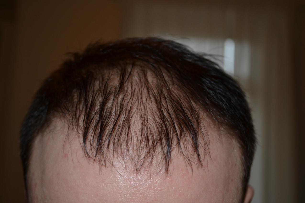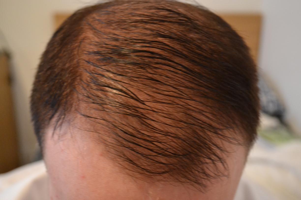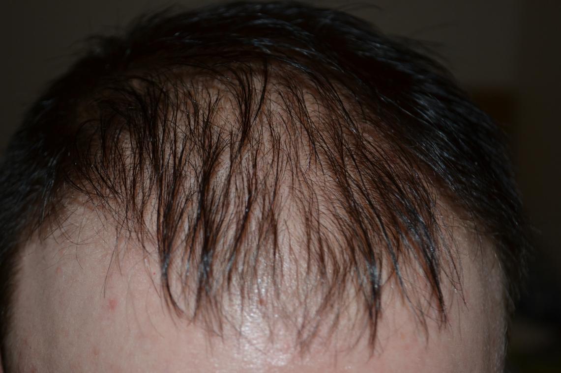 I have disclosed some new pictures in this thread, to show you the current state of my hair. Here my hair is without any hair products. I have also dyed it a bit darker, which I think makes the miniaturized hair on top actually look a bit more healthy than it actually is.