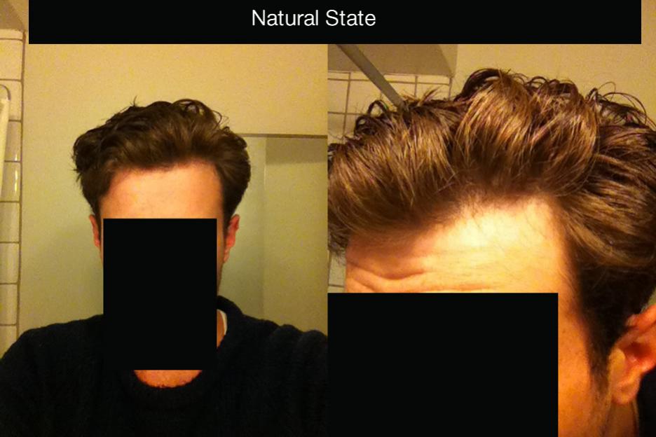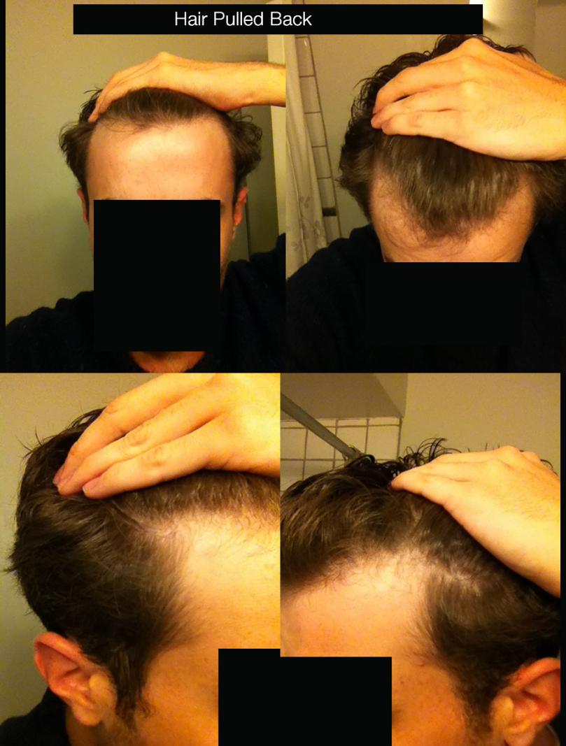 -First one is my hair without pulling anything back. I am fine with how it looks now, WITHOUT any more receding.