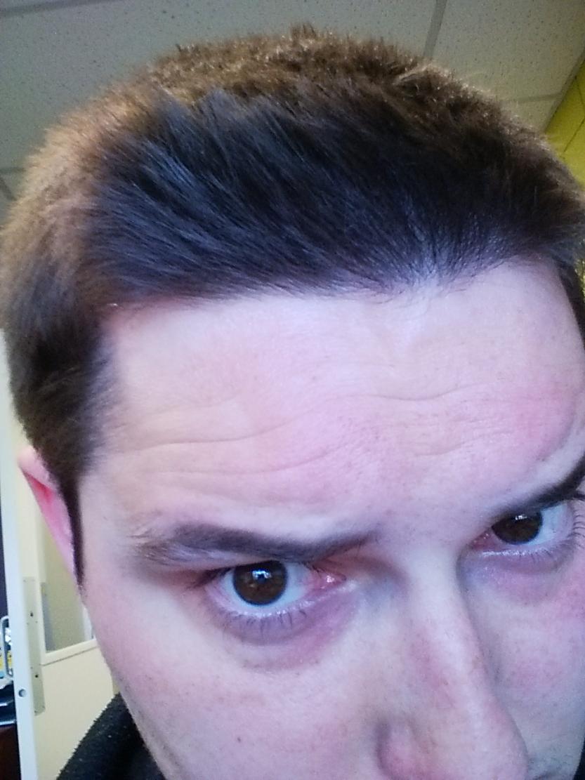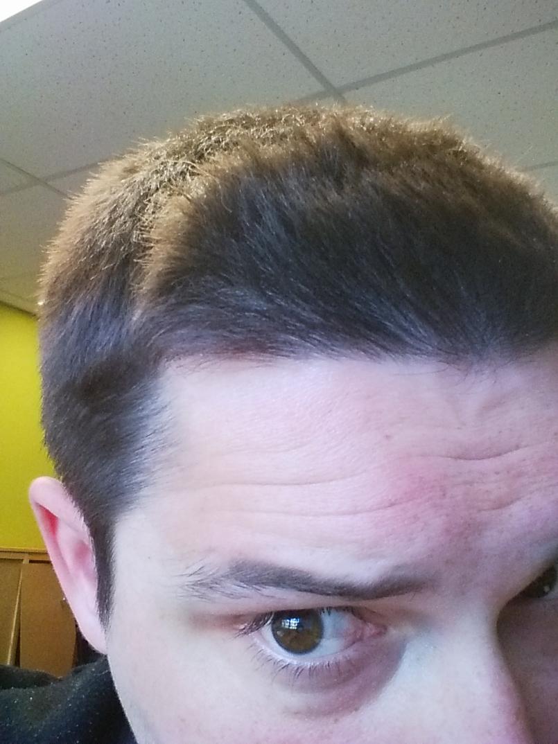 I've always had a slightly mature hairline, but it looks to be receding more to me. The photos were taken in front of a window on a sunny day, and I have hairspray in my hair.