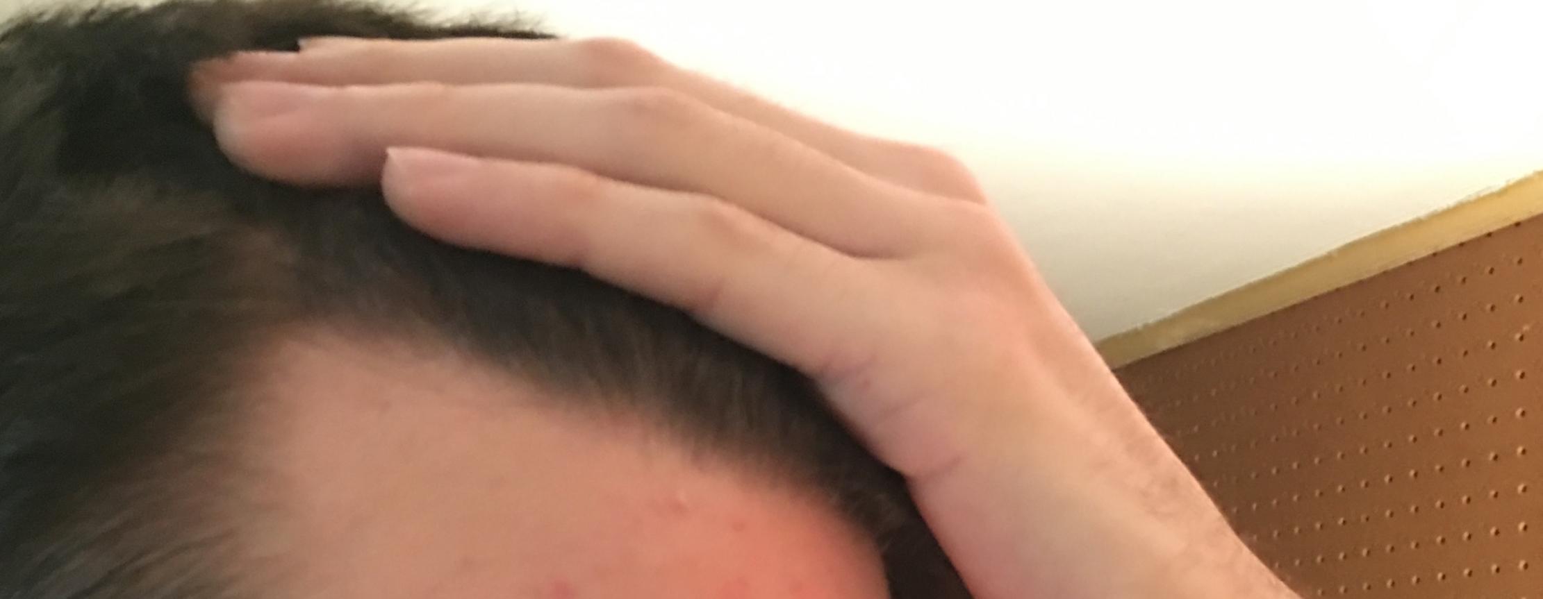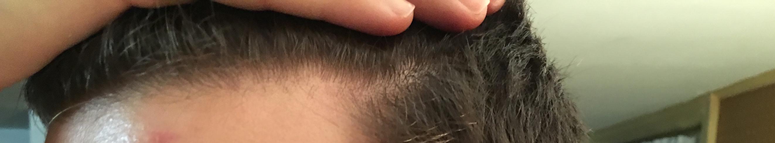 The very first sign of hair loss I ever noticed was 4 years ago, at 16. I noticed the faintest amount of hair loss at the very middle/center of my hairline, right in the twirl of a cowlick. Until recently I'd pretty much forgot about it.