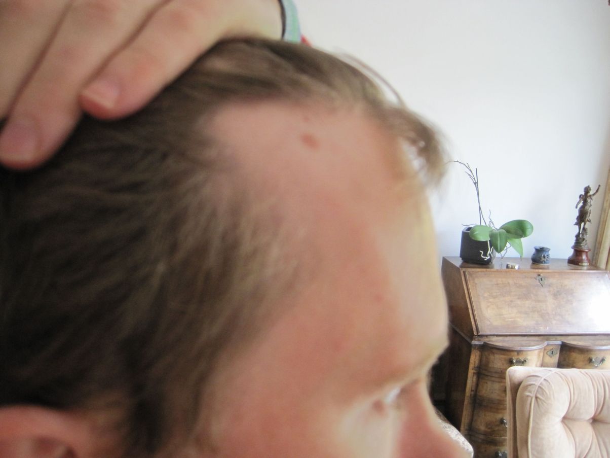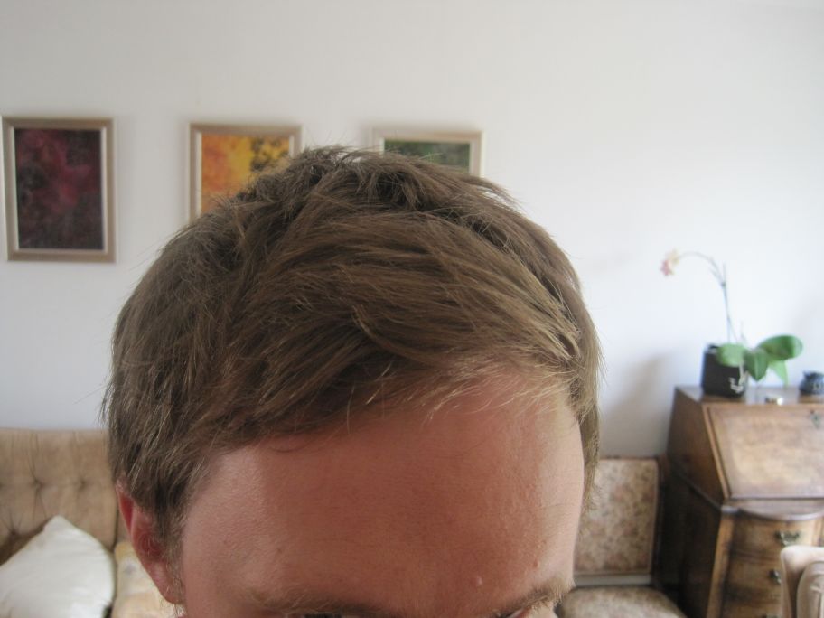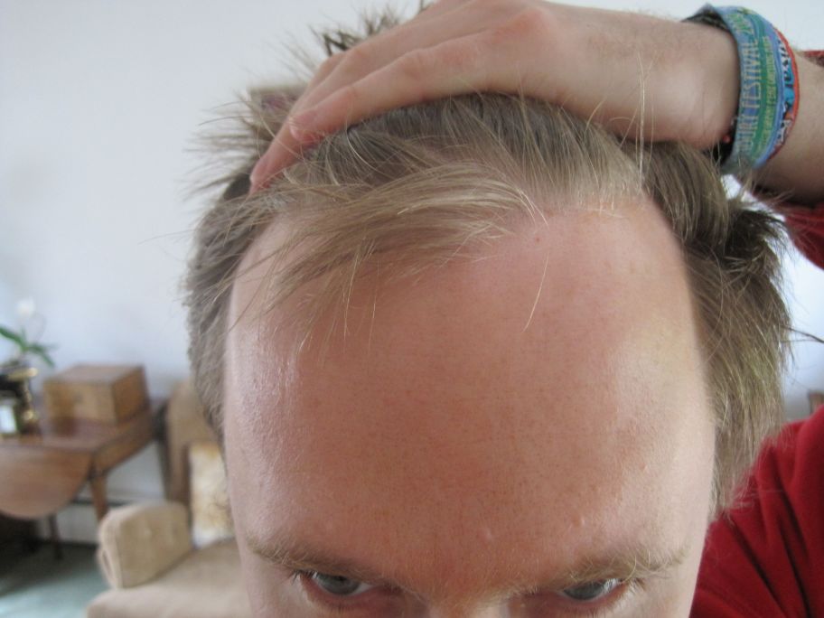 Despite having always had a higher than average hairline I started suspecting it was receding a few years ago and luckily, this has progressed almost imperceptibly slowly. I wasn’t certain it was going on at first – but now am and there has been a definite receding at the front and above the temples. I have a small mole that used to be under the hairline and is now well out in that area.