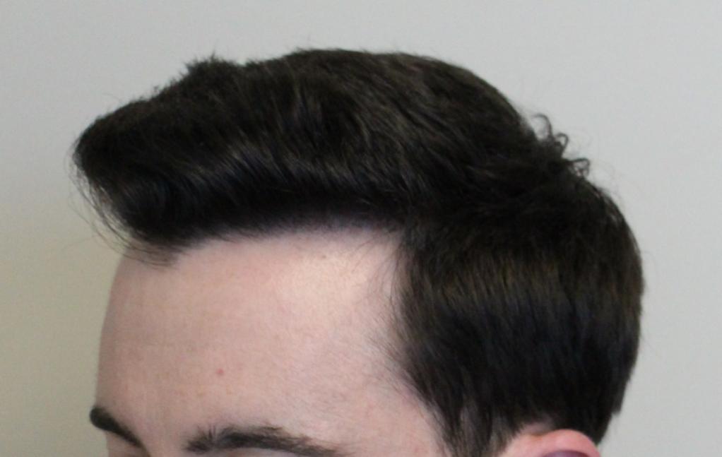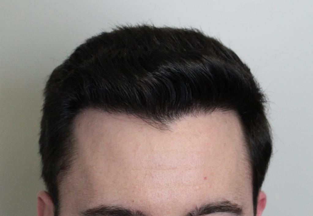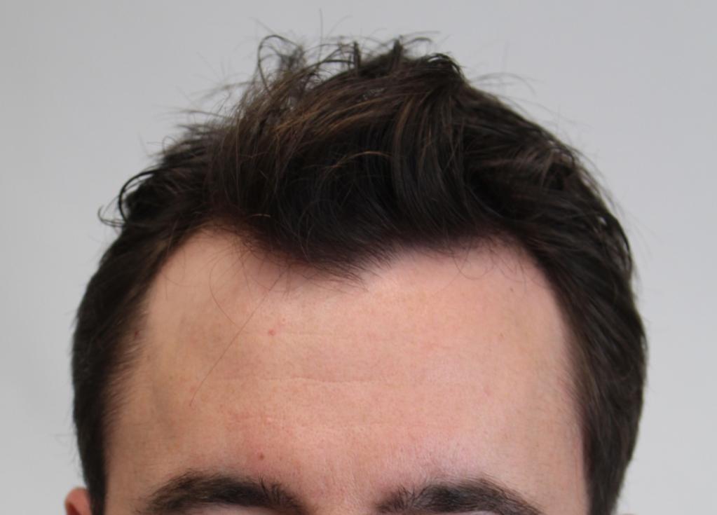It was about 5 years ago (age 27) that I started to notice my hairline beginning to recede slowly. I had always had a V shape hairline, but the temples had began to pull further behind. I was incredibly self-conscious and would spend a lot of time in front of mirrors analyzing my hairline and styling my hair to cover my hairline.