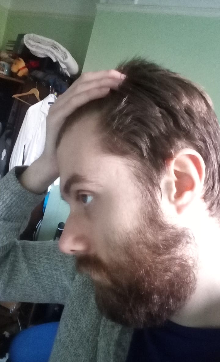 I have attached some photos of my current hair. The photo with a shorter beard and better resolution is of me about five years ago, just as a comparison.