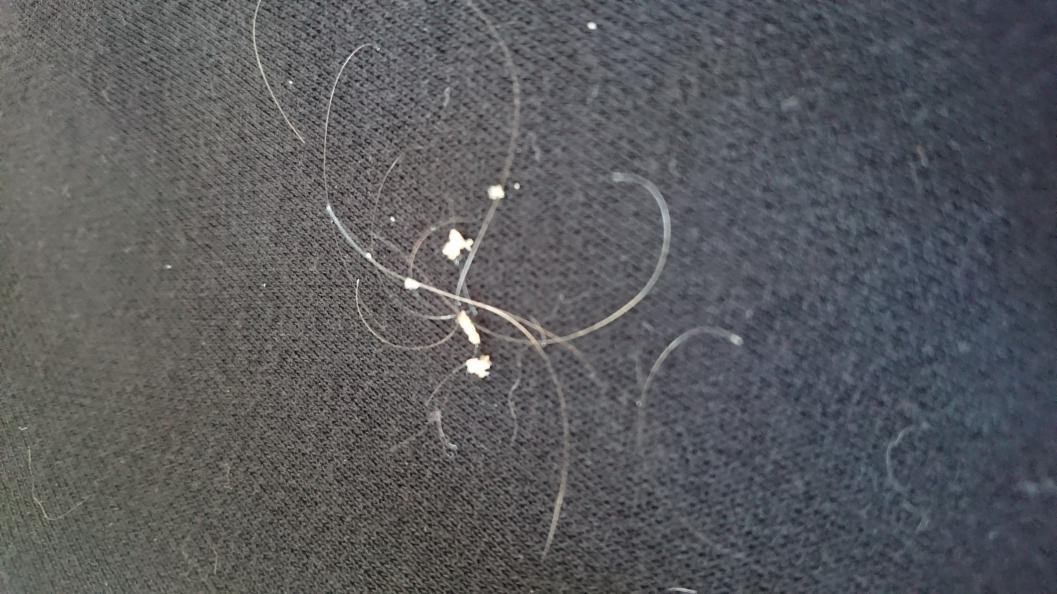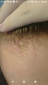 Now, it's very advanced but I notice small scale type prices of skin fall off when I comb it, maybe once a week I may get one that's half the size of a finger nail. My entire top of the head seems to be thinning, but what had me convinced its a dermatology issue is that it is so itchy. Also, whenever hair falls out, it usually has little bits of skin attached (see attachment). This is the same material the bigger scales seem to be made of too whenever I see one. Itchyness seems worse at evenings. In picture below you can see the scales on my skin stukk before they've broke off. But the ahir around there is not long for this world now those have appeared.