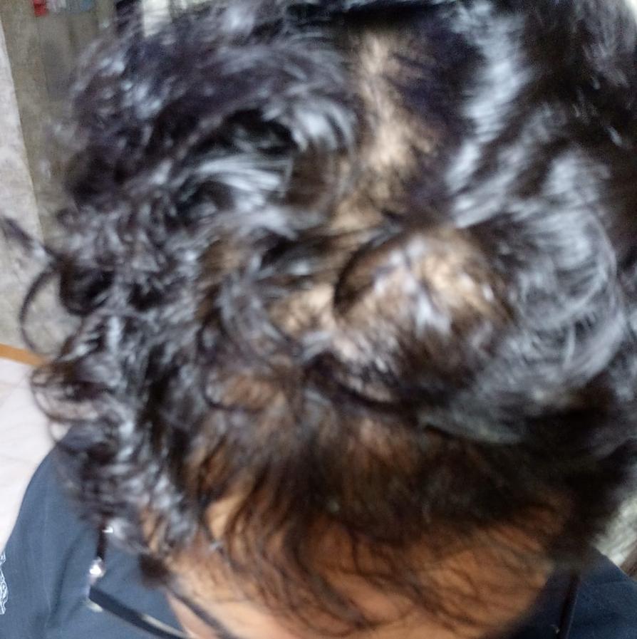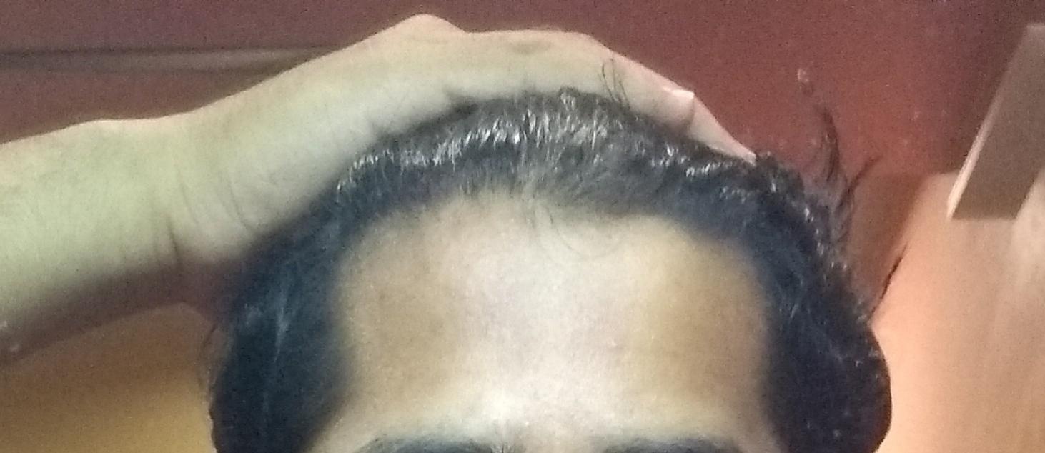 The two spots became more prominent now but apart from them no less hair anywhere on whole head,it's just the front part.