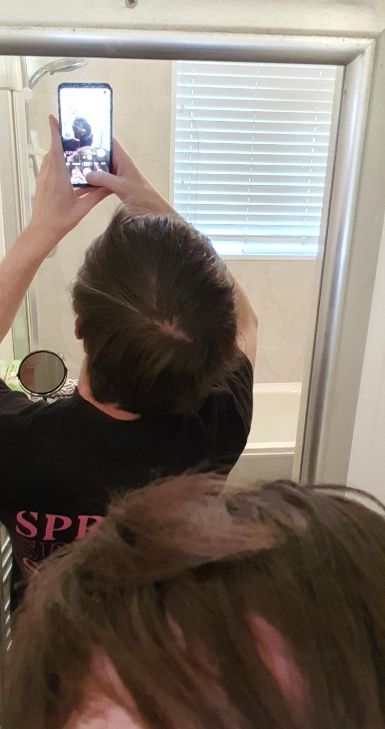 Hoping someone can tell me if they think it looks normal or if I should do something about the crown hair. I normally wear my hair pushed back so this is normally covered - and yes I have a grey strip that's been there since I was about 19.