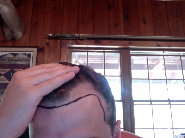 Okay guys so I have almost reached my 8th month of taking Fin. I have also been taking Nizoral 2% for probably close to four months. Since the last time I took some pictures I do not believe I have lost more hair, maybe even thickened up a bit I will let everyone be the judge. I took some pictures of my hair wet, dry, and an outline of how I would want an ht to look like. I know its not perfect but it's a rough draft. Also, i included a photo before I started to really lose my hair which was taken around halloween 2008. I've never had the real "box" looking hairline, so I'm fine with never having one. Hope to get an HT sometime soon, but being in school its tough and also my mom does not believe that I'm losing my hair and that I am just getting a mature hairline even though my dad was bald. Take a look at the pictures and let me know what you guys think.